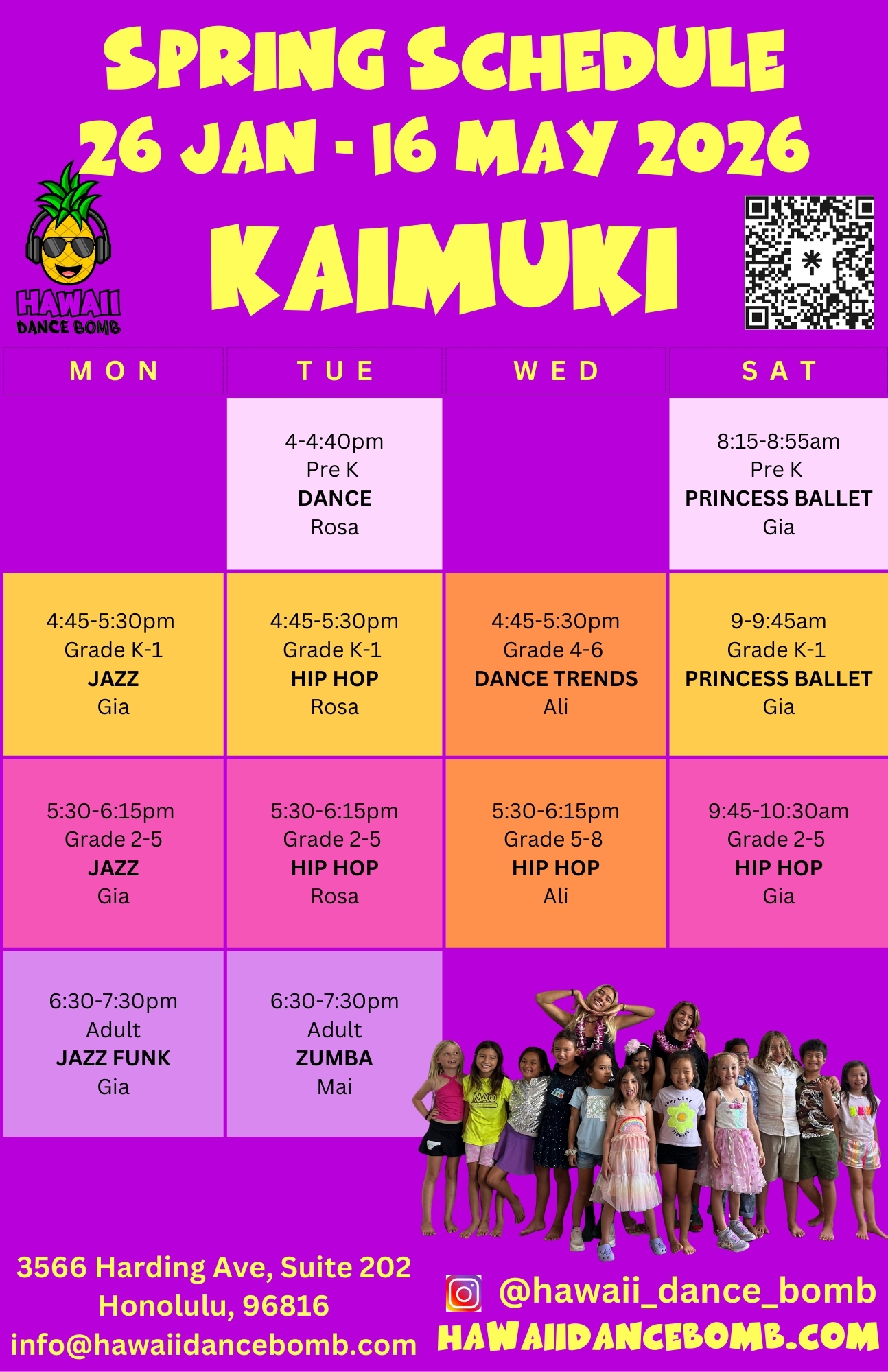 Hawaii Dance Bomb Dance Studio and Silent Disco Fall Schedule